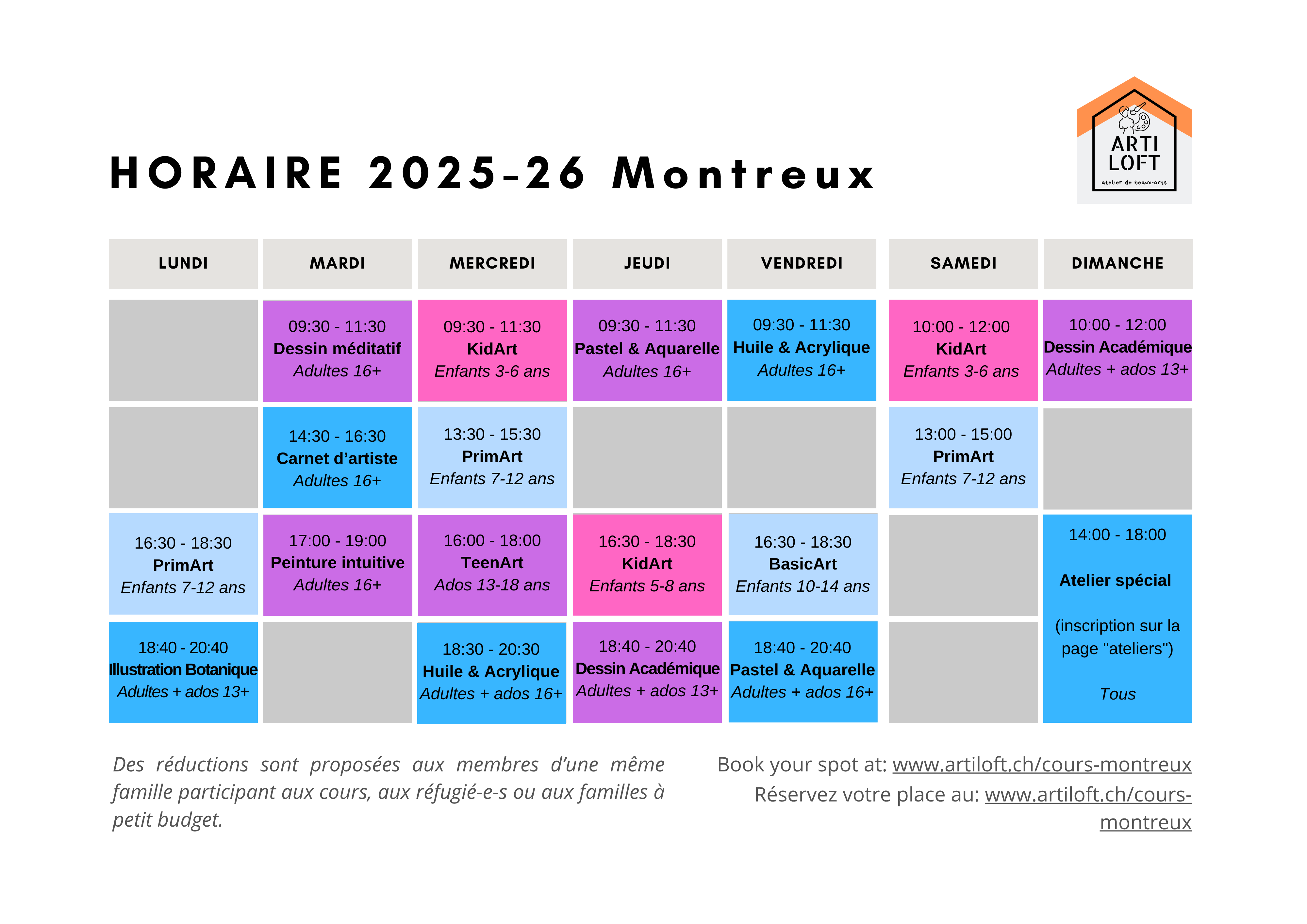 Attention: For organisational reasons, online registration on our website is mandatory before coming to the course. If you cannot find the desired course on the chosen date in the online timetable, it means that it is full or has been cancelled.